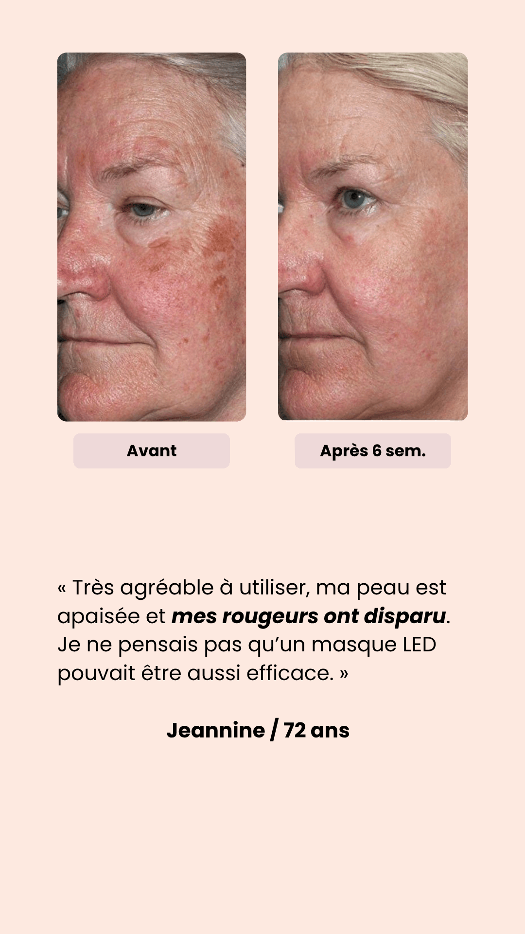 Avec l'appui de la science et de la technologie, atténuez l'apparence des rides et régénérez votre peau grâce à la luminothérapie LED non invasive, cliniquement prouvée.